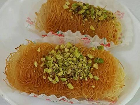 - تغمر اصابع الكنافة بالسمنة او الزيت او خليط من السمن والزيت.